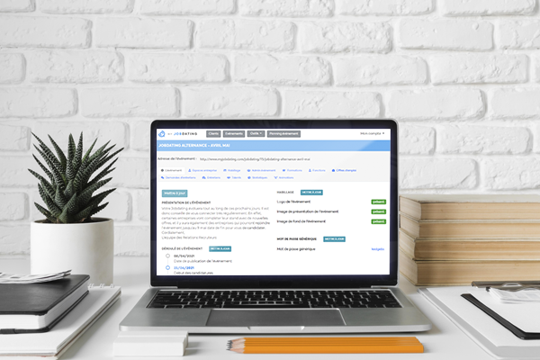 L’administrateur du jobdating pilote l’ensemble des actions du jobdating : de la création des stands en passant par la création des espaces recruteurs et la personnalisation de la page de l’évènement.